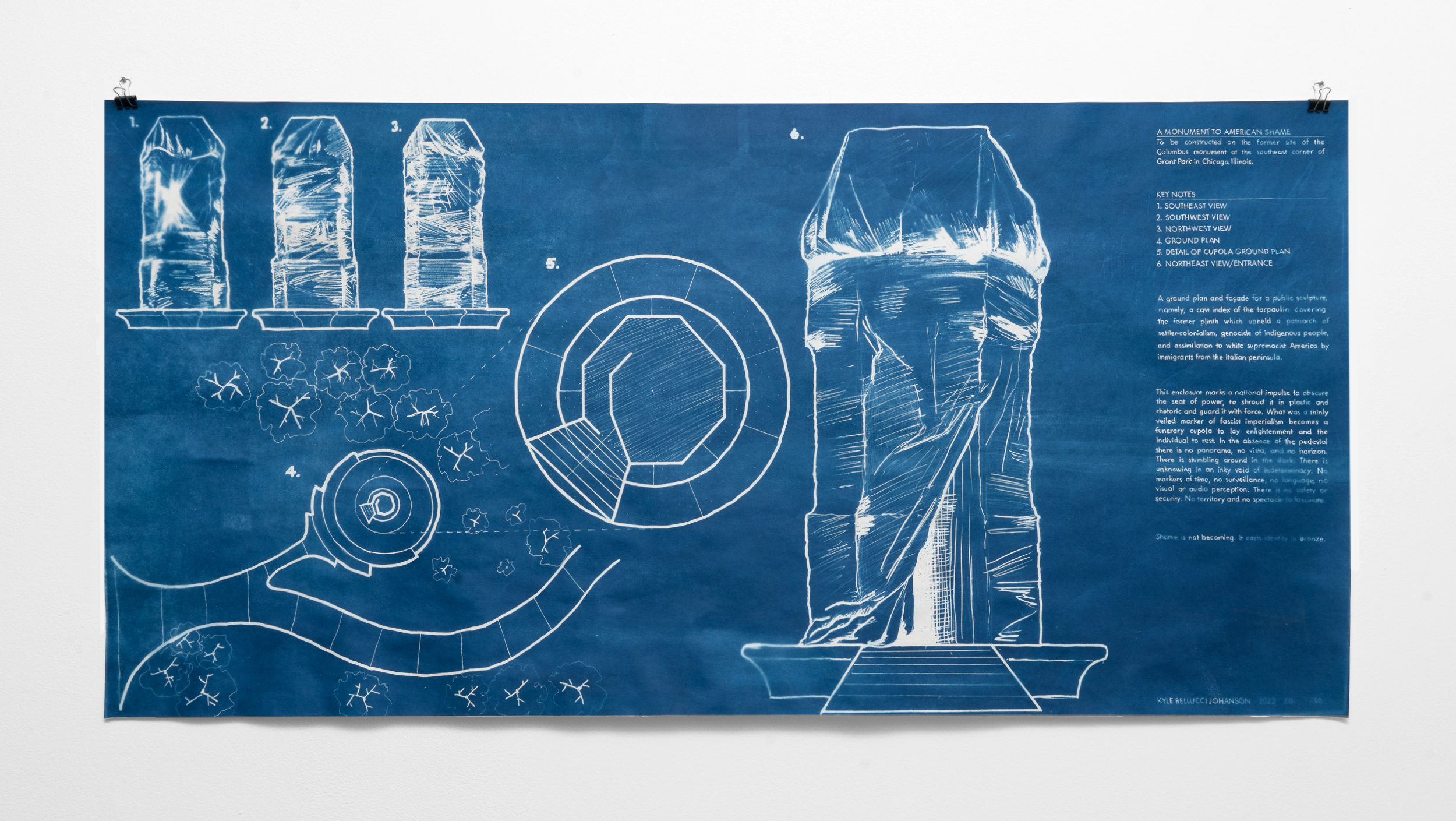 Cyanotype plan for a monument to American shame